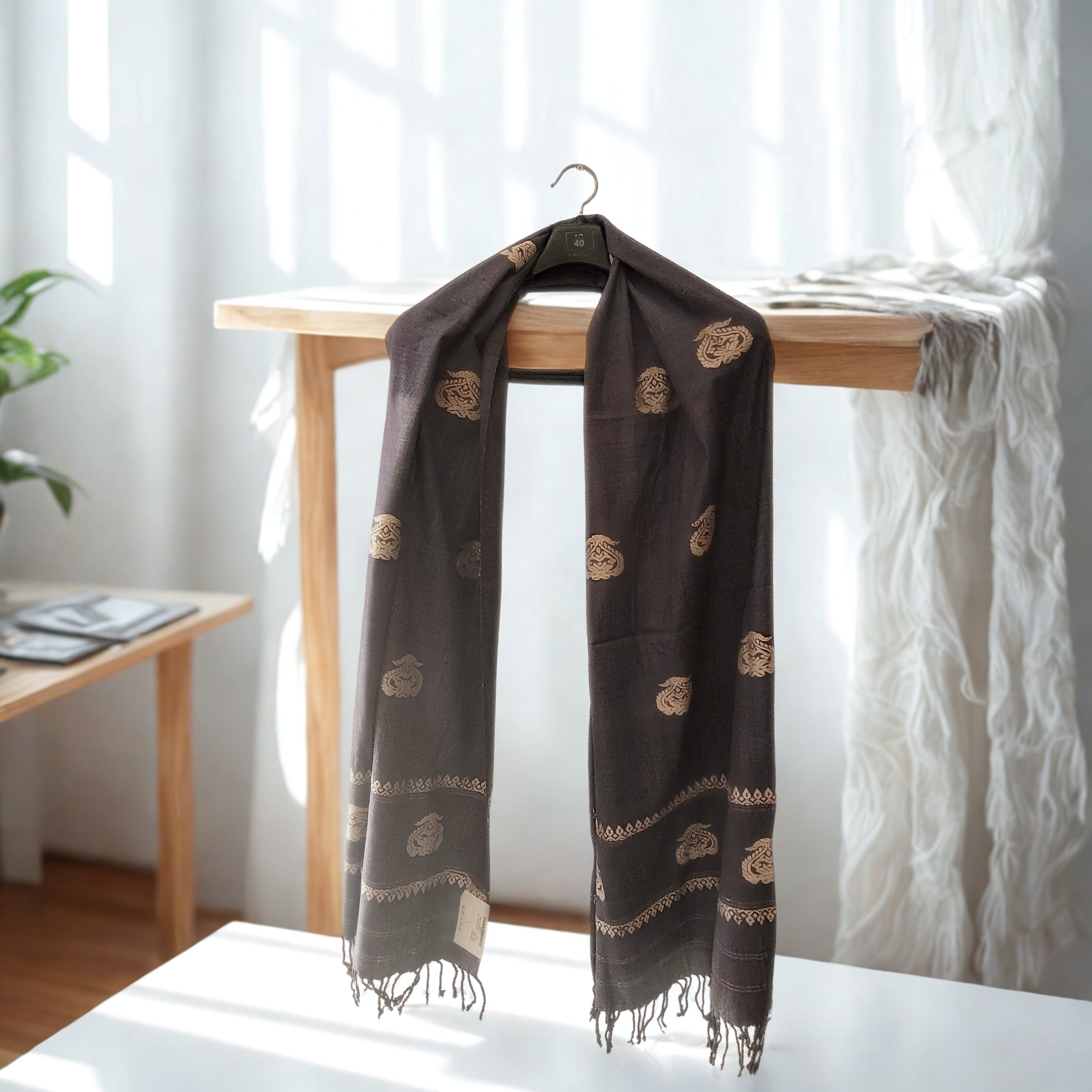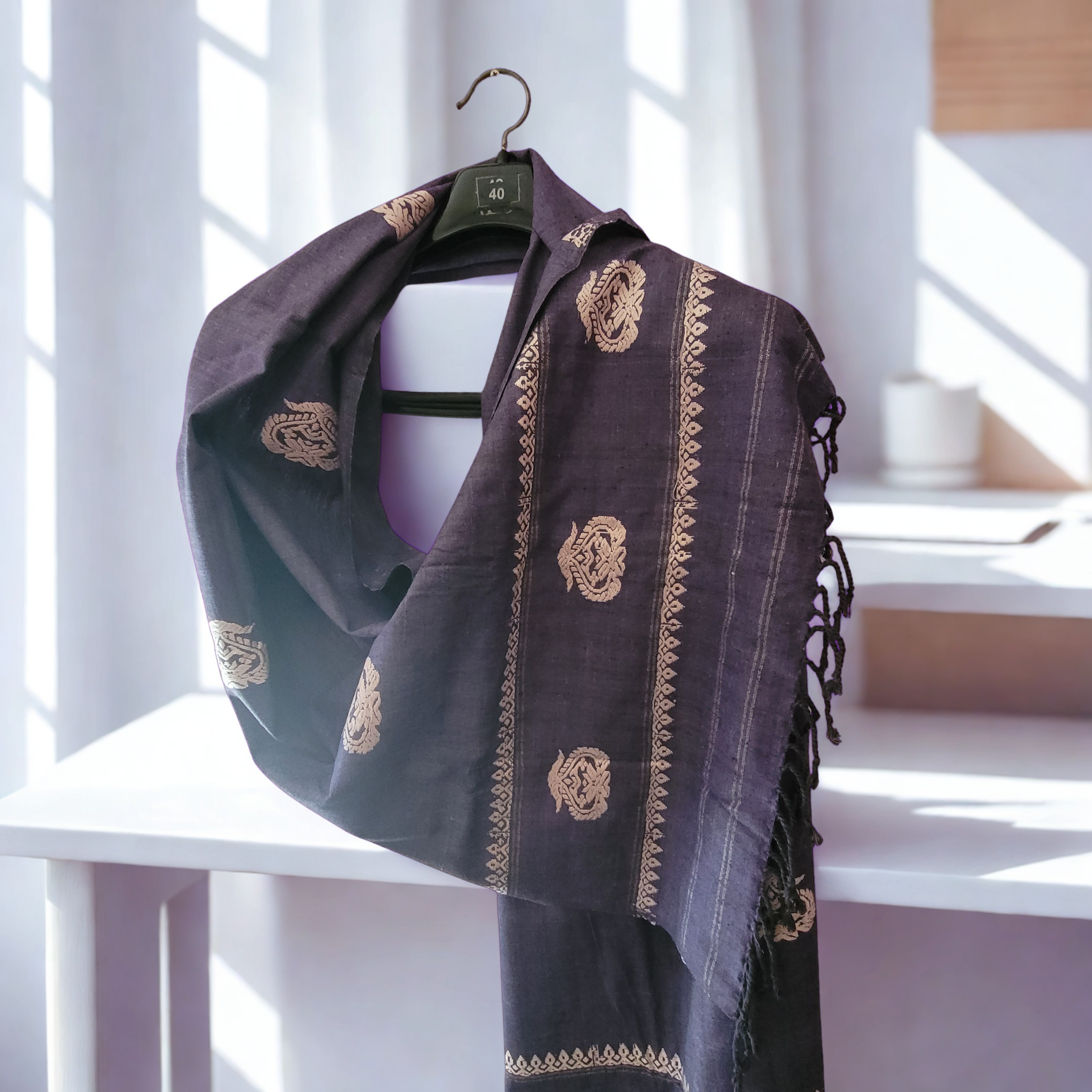 Purple Eri Silk Stole with Assamese White Motifs | Handwoven Ahimsa Silk | Lightweight Women’s Stole