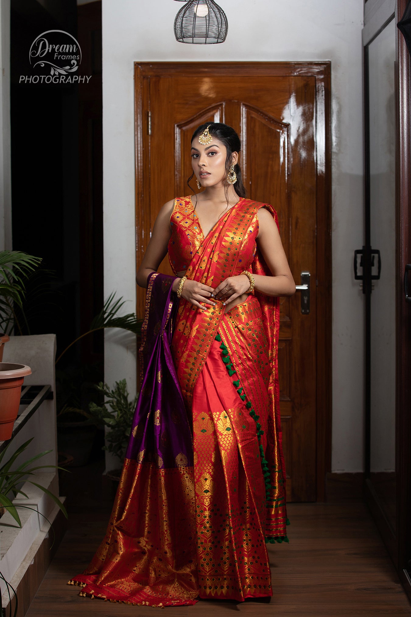Royal Red & Purple Assamese Pat Silk Mekhela Chador with Traditional Guna Zari Work