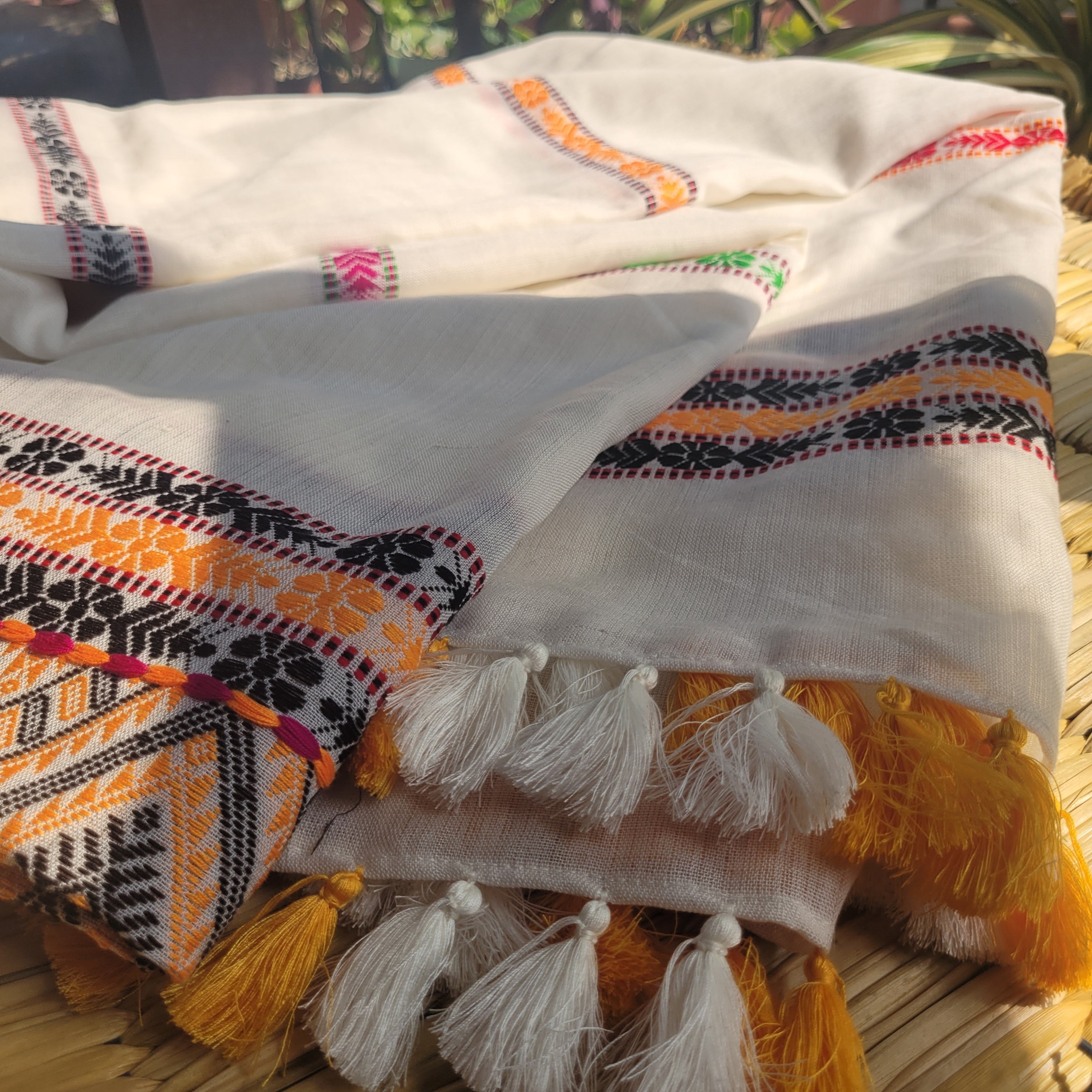 Handloom Cotton Single Sador with Black & Yellow Motifs | Assam Editions